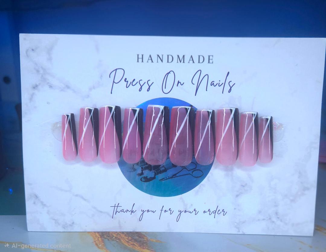 Abstract black and white press-on nails featuring striking geometric patterns and bold line work. These extra-long designs offer a sophisticated, artistic aesthetic perfect for making a statement. Each nail showcases unique abstract elements that complement any style, from minimalist to avant-garde. Easy to apply and reusable, they deliver salon-quality results without the commitment. Ideal for those seeking edgy elegance with contemporary flair. All nails are made to order. Please allow 2 weeks to receive your order.