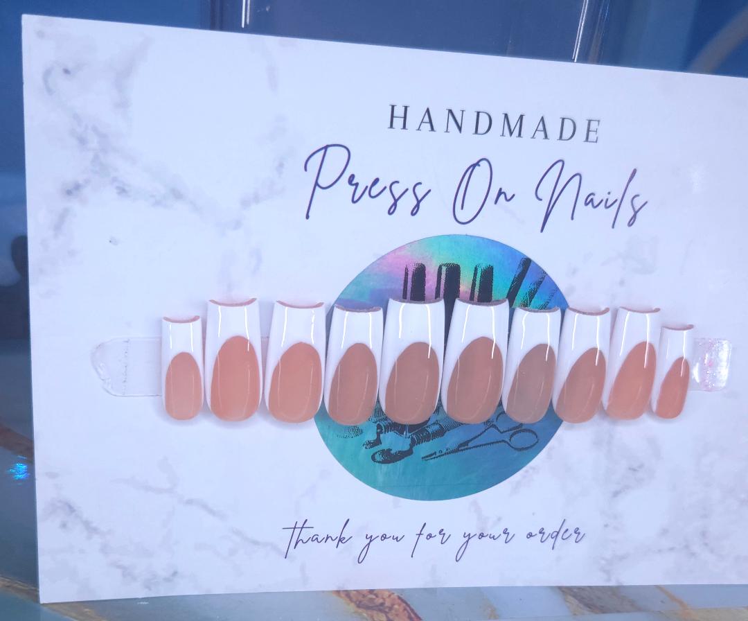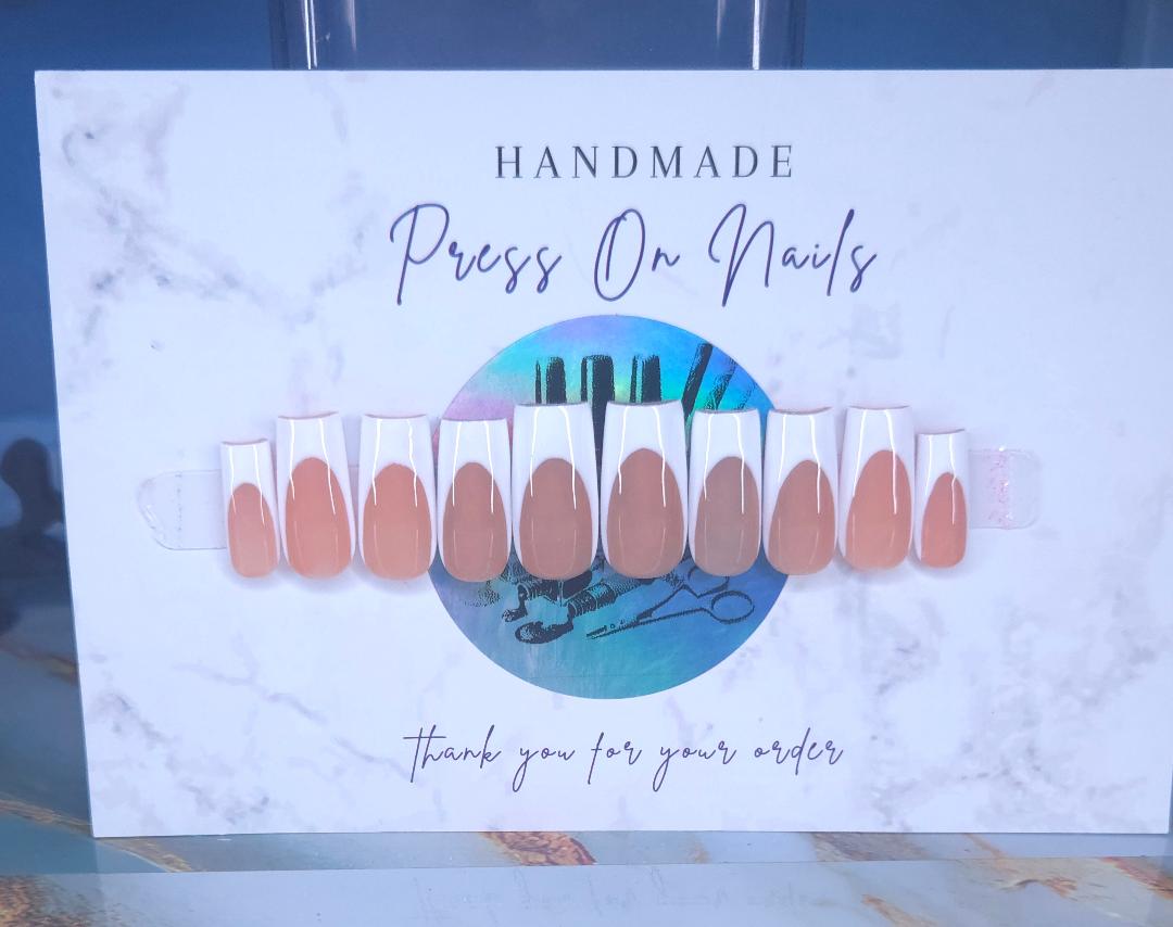 Timeless elegance meets everyday wearability with our Classic French press-on nails. Featuring the iconic white tip design that flatters any skin tone, these nails deliver a polished, professional look suitable for any occasion. Pre-shaped and ready to apply, they offer salon-quality results without the salon appointment. Each set includes multiple sizes for a custom fit, ensuring comfort and durability throughout wear. Perfect for those seeking a sophisticated, versatile nail style that never goes out of fashion. All nails are made to order. Please allow 2 weeks to receive your order.