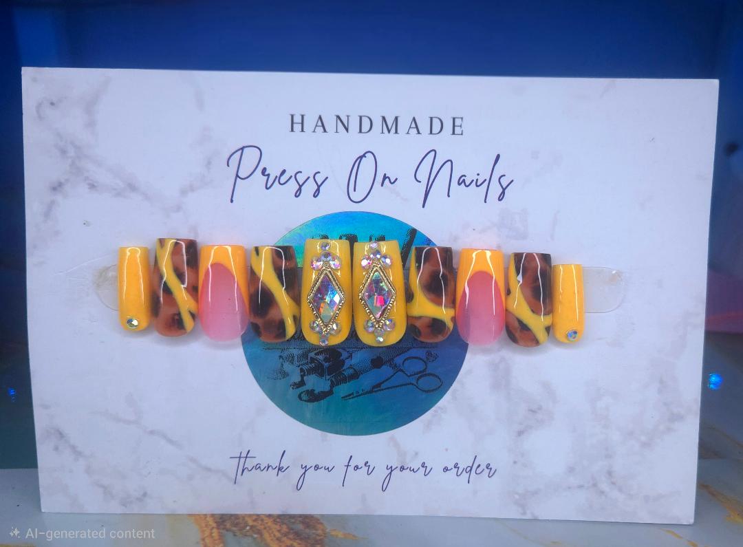 Yellow Tortoise medium short press-on nails deliver salon-quality results in minutes. This striking tortoise shell design features warm yellow tones with natural-looking depth and dimension. The medium short length offers versatility for everyday wear while maintaining an elegant aesthetic. Each nail is pre-sized for a precise fit, ensuring comfortable application without damage to your natural nails. Simply select your size, apply with the included adhesive tabs or glue, and enjoy flawless nails that last up to three weeks. Perfect for those seeking a bold statement without the salon commitment.
